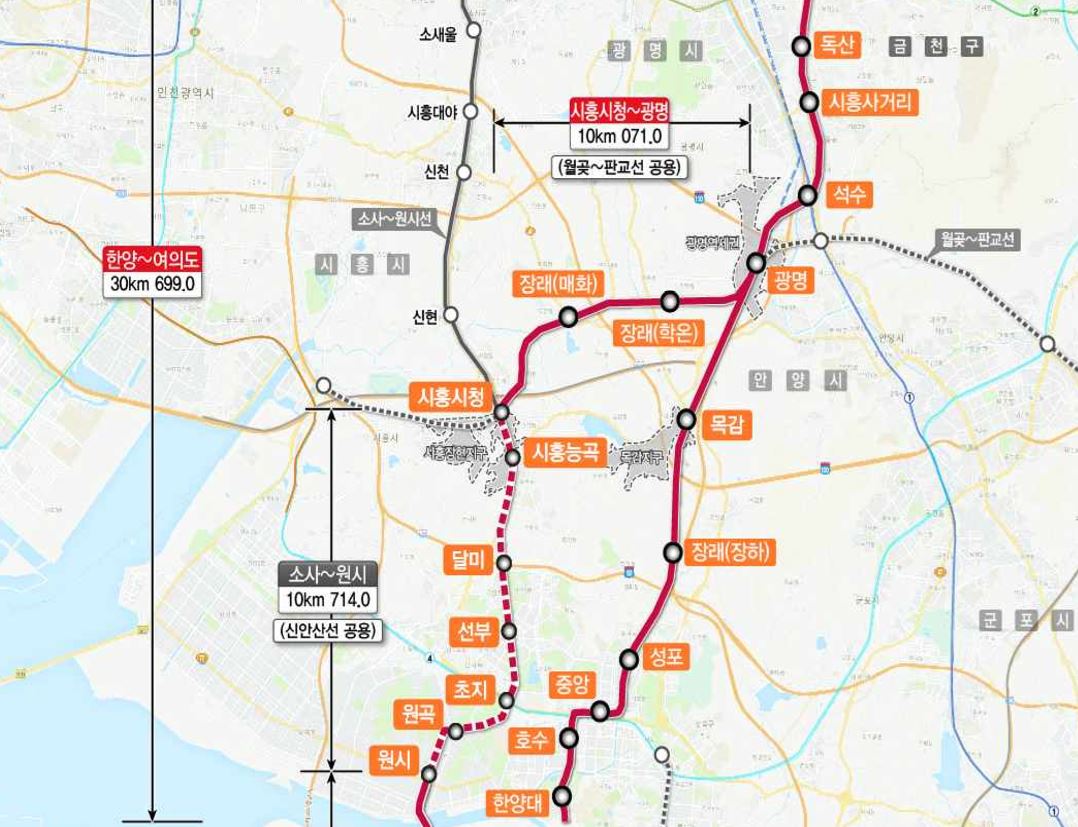 월곶~판교간 34.155Km 복선전철 신설