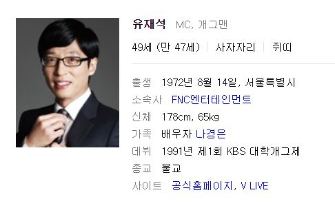 위 사진은 네이버 인물정보에 나오는 정보입니다.