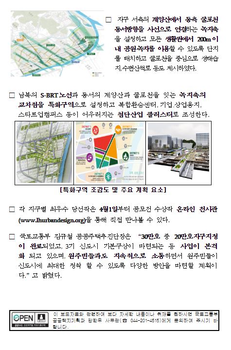 당선된 업체에는 입체적 도시공간 계획 및 도시 설계 분야 총괄계획과 지위를 부여하여 3기 신도시 지구 계획을