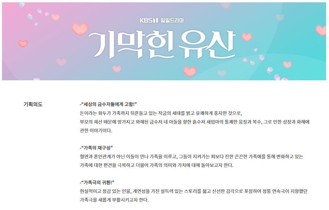 - 기막힌 유산은 꽃길만 걸어요 후속작으로 서른넷의 무일푼 처녀가 팔순의