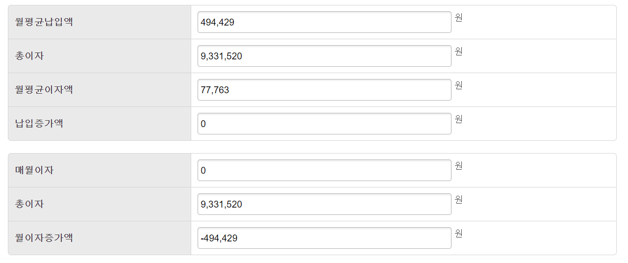 위와 같이 총이자 비용이 9,331,520원이 나오는것을 확인할 수 있네요